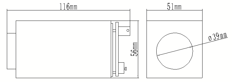 88 mm*51 mm*56 mm (116 mm*51 mm*56 mm su uodegos lenta) |